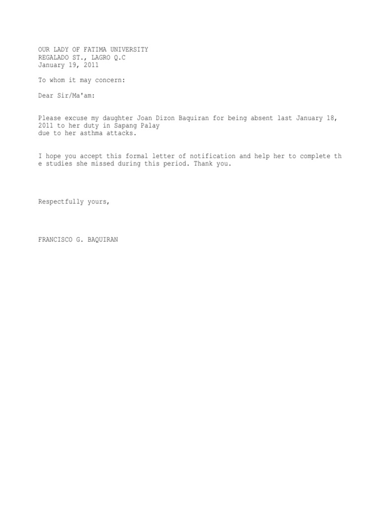 excuse letter.docx - February 7 2020 Dear Ma\u2019am\/Sir ... from www.coursehero.com Maybe you would like to learn more about one of these? Please excuse my daughter for being absent. Check spelling or type a new query. We did not find results for: